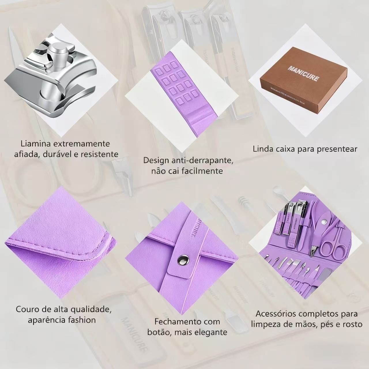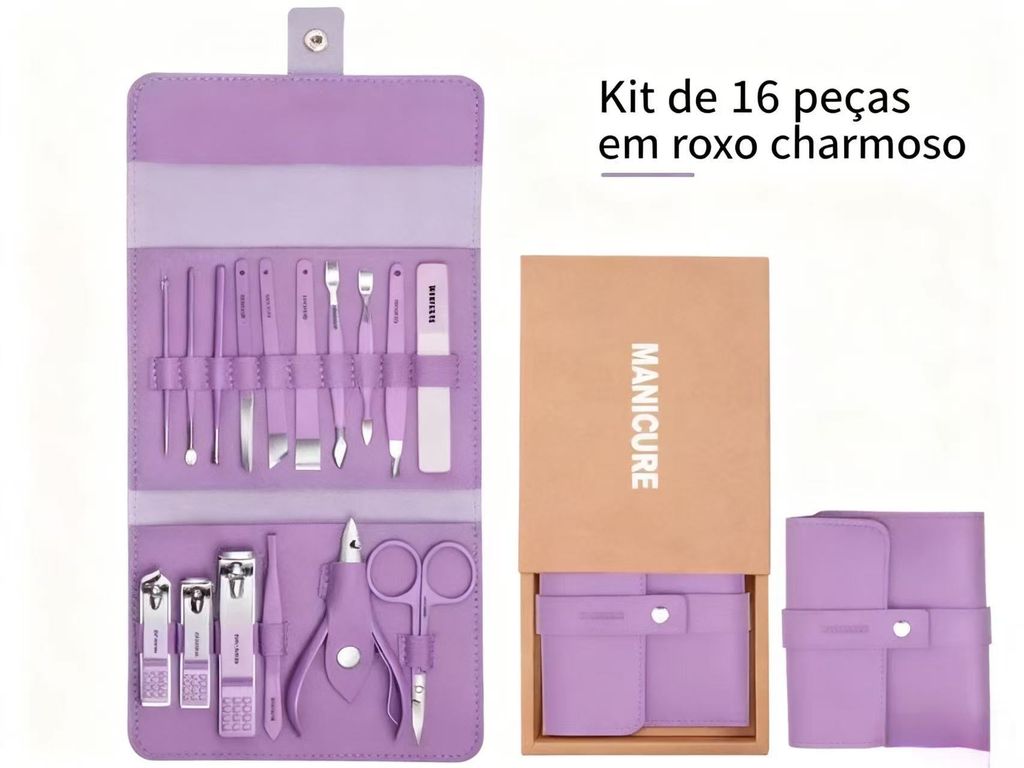 Kit de manicure 16 peças de aço inox, tesoura de unhas profissional, conjunto de pedicure, ferramentas de cuidados de unhas, conjunto de beleza, conjunto de couro luxuoso